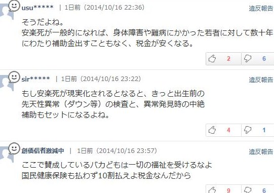 「もし安楽死が現実化されるとなると、きっと出生前の先天性異常(ダウン等)の検査と、異常発見時の中絶補助もセットになるよね」