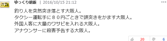 やたら「大阪人」と決めつけてるけど、大阪も大都会で、東京と同様、もともとは、大阪以外の地方出身者が圧倒的に多いんだけどね。