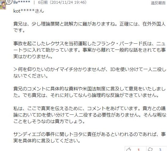 「(貴兄のコメントに具体的な資料や米国法制度に言及して意見をいたしました。でも貴兄は、)それに対してなんら論理的な反論ができていません」