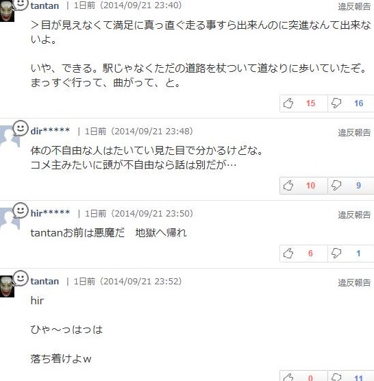 まあ、「カルト連」のボスstomachmanあたりと、その仲間の臭いがプンプンなのよw特に、この「tantan」とかいうヒマ人ww