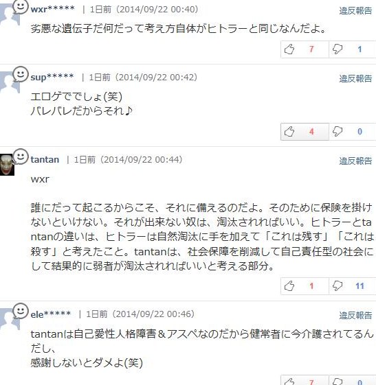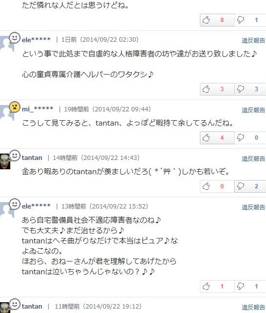 なぜか「tantan」さんにまとわりついてるような「ele*****」さんとやらのコメントは、