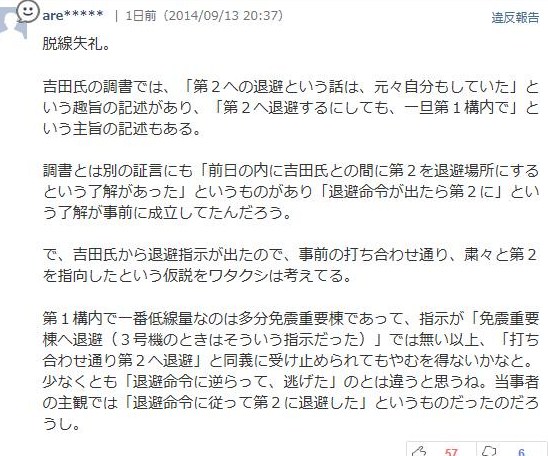 調書とは別の証言にも「前日の内に吉田氏との間に第2を退避場所にするという了解があった」というものがあり「退避命令が出たら第2に」という了解が事前に成立してたんだろう。
