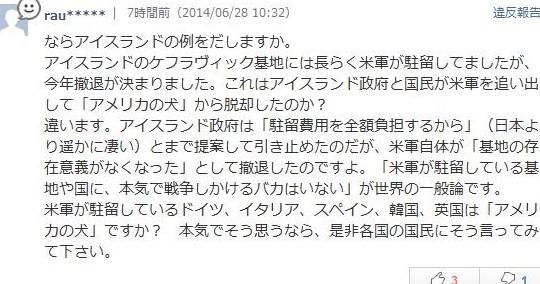 違います。アイスランド政府は「駐留費用を全額負担するから」(日本より遥かに凄い)とまで提案して引き止めたのだが、米軍自体が「基地の存在意義がなくなった」として撤退したのですよ。」