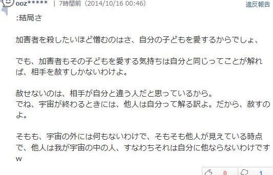 その幸せが、佐世保の事件の加害者みたいに、殺人・解剖とか、