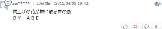 そうそう、安倍ちん、花見で、こんなこと言ったんだってねーw