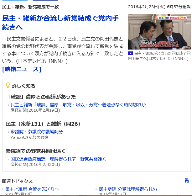それこそ、元が自民党の出身者は、カッコ悪い「出戻り」だということになってしまうけど、なにを今さら、昔から多いのだしね、そういう議員は。
