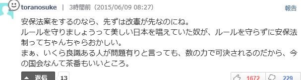 ~ルールを守りましょうって美しい日本を唱えていた奴が、ルールを守らずに安保法制ってちゃんちゃらおかしい。~