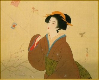 この絵を見ても思ったのだが、凧が揚がってる空や羽子板で羽根つきなんて風景、もう何年前から見なくなったのか、それすらも曖昧になっている。私の子ども時代には、まだ少しは やってたんだけどな。