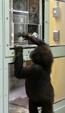 『ゴリラ、世代間でIT格差? 子は熱心にタッチパネル 親は触れもせず』